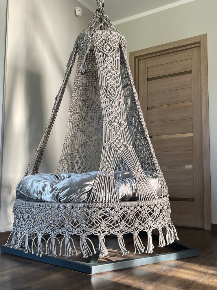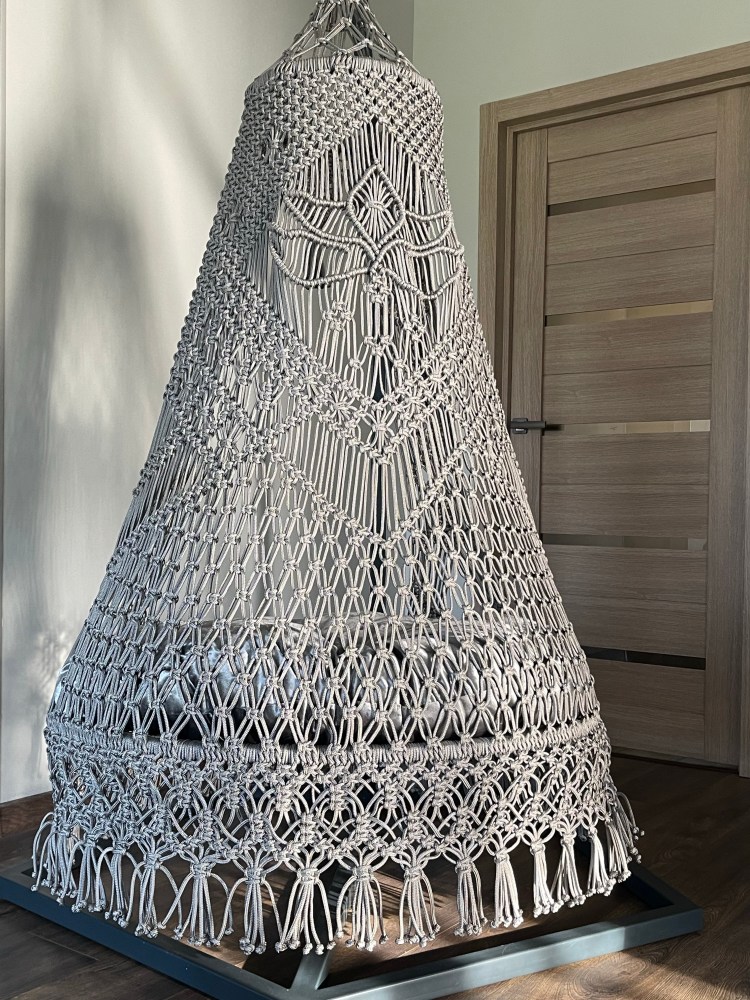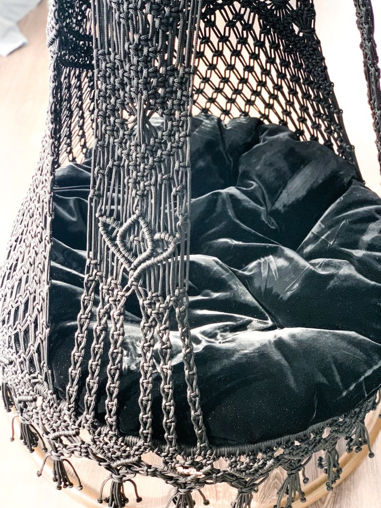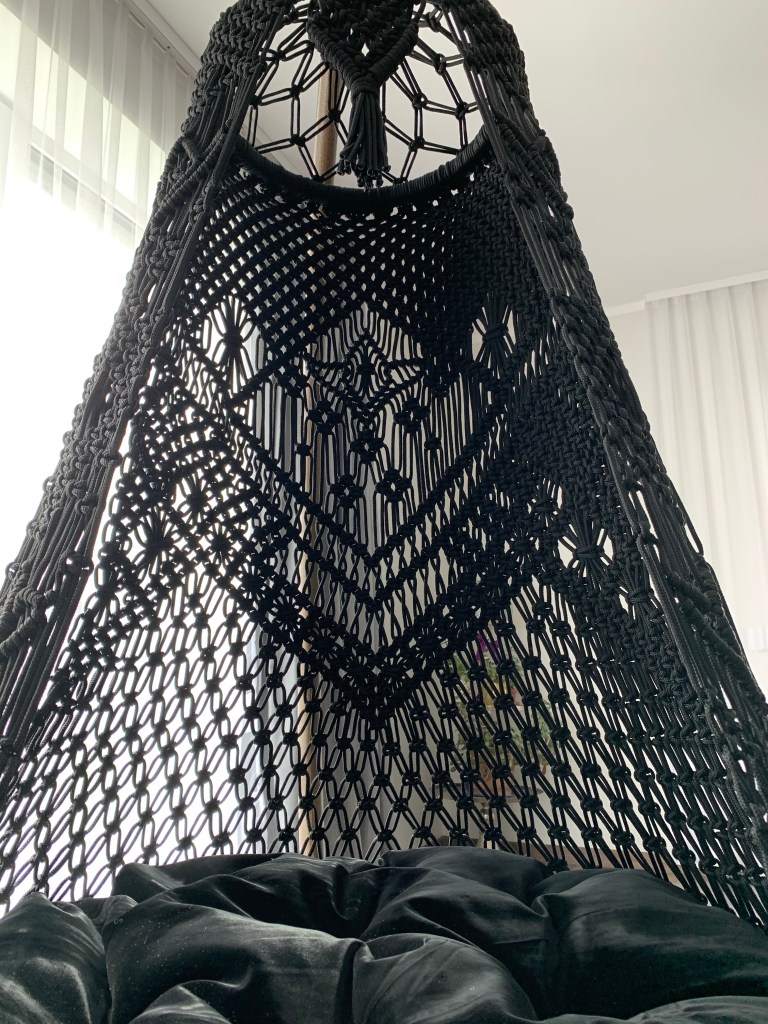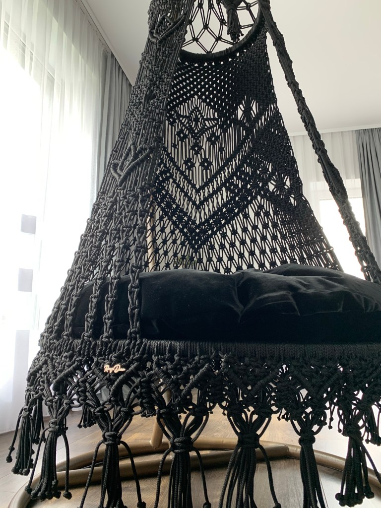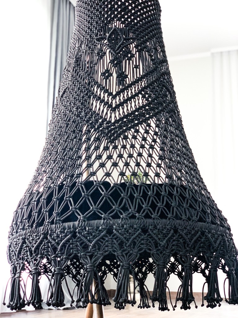 Beautifully handcrafted using the macramé knotting technique, these swing chairs are made from moisture-resistant cord, ensuring durability and comfort.