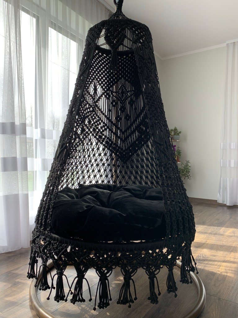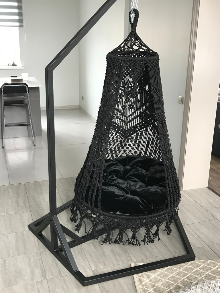 It features strong holding elements that keep the chair securely in place – whether hung in your chosen spot or on a special stand.